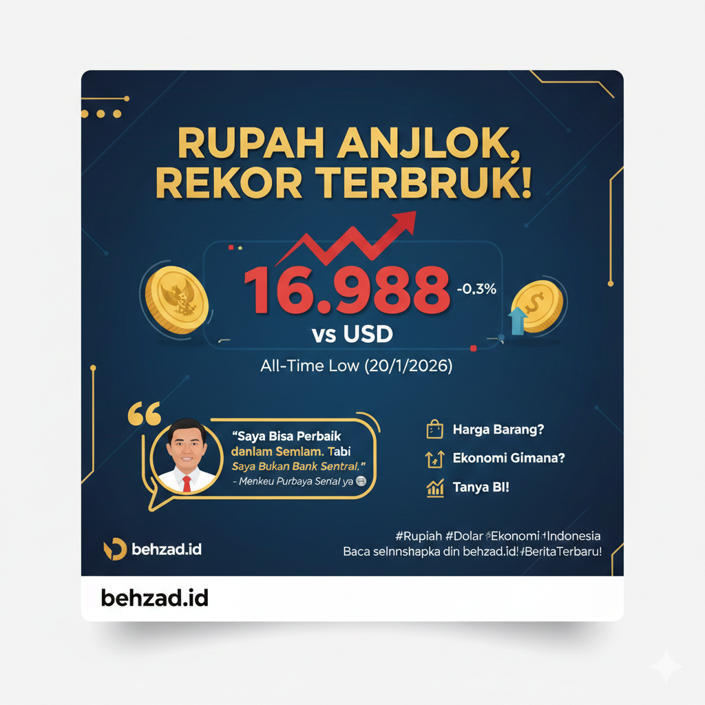 Bantaeng, behzad.id – Nilai tukar Rupiah terhadap dolar Amerika Serikat (AS) terus merosot hingga mencetak rekor terlemah sepanjang sejarah (all-time low). Pada perdagangan Selasa (20/1/2026), mata uang Garuda sempat terjun bebas ke level Rp16.988 sebelum akhirnya ditutup di angka Rp16.950.