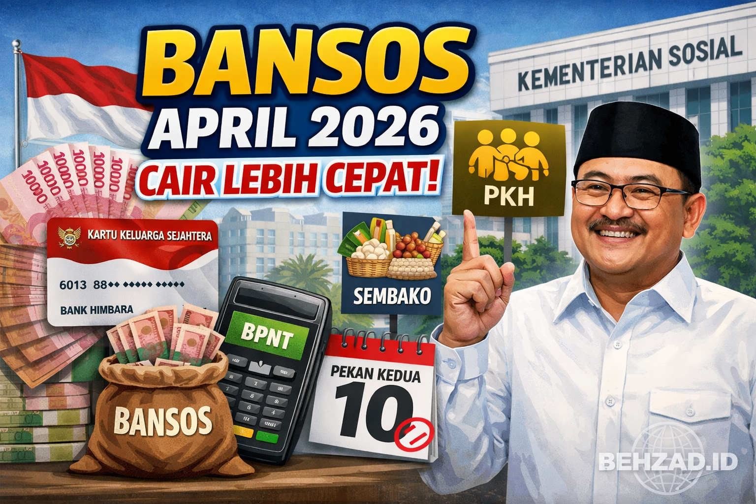BEHZAD.ID – Kabar baik bagi masyarakat penerima bantuan sosial. Kementerian Sosial (Kemensos) memastikan penyaluran bantuan sosial (bansos) reguler triwulan II 2026, termasuk Program Keluarga Harapan (PKH) dan Program Sembako/Bantuan Pangan Non Tunai (BPNT), akan mulai cair pada pekan kedua April 2026.