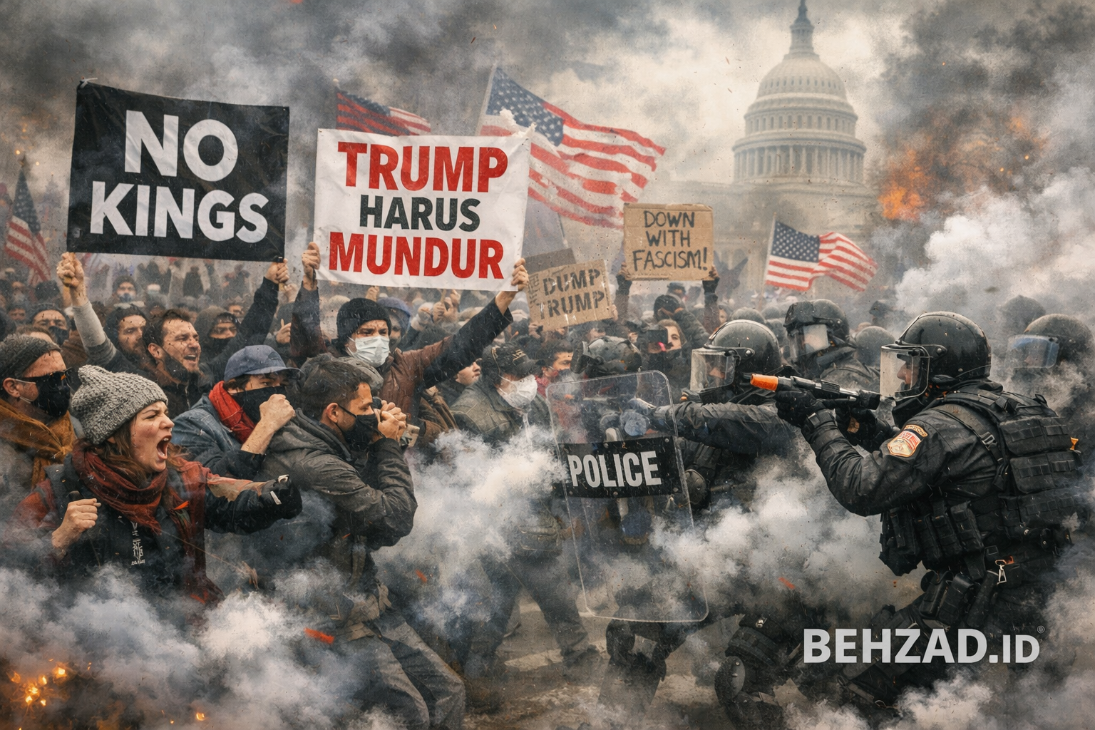 BEHZAD.ID – Gelombang protes besar-besaran kembali mengguncang Amerika Serikat. Jutaan warga turun ke jalan dalam aksi bertajuk “No Kings” untuk menentang kepemimpinan Presiden Donald Trump yang dinilai semakin otoriter.