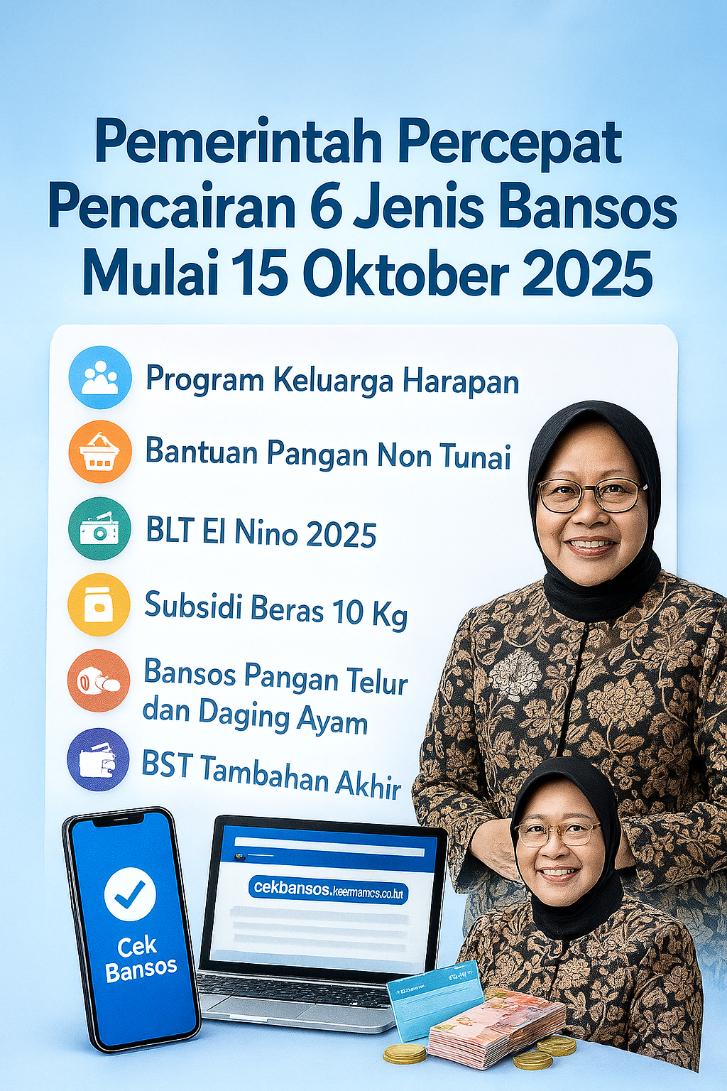 Sumber : BatamPos.co.id – Pemerintah Kebutan Pencairan 6 Jenis Bansos Mulai 15 Oktober 2025