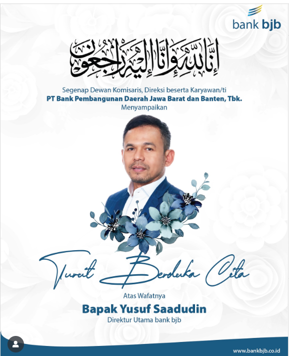 “Keluarga besar Bank BJB turut berduka cita yang sedalam-dalamnya atas kepergian Bapak Yusuf Sa’adudin. Semoga amal ibadahnya diterima di sisi Tuhan Yang Maha Esa dan keluarga yang ditinggalkan diberikan ketabahan,” tulis Widi dalam keterangan resminya.