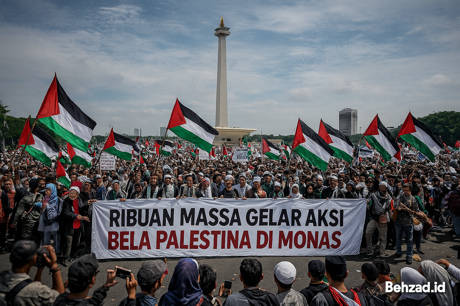 Jakarta, 11 Oktober 2025 — Behzad.id Ribuan massa yang tergabung dalam Aliansi Muslim Bela Palestina (AMBP) turun ke jalan di kawasan Monas, Jakarta Pusat, Sabtu pagi (11/10). Aksi damai ini menyerukan solidaritas terhadap rakyat Palestina yang terus menghadapi agresi militer di Gaza.