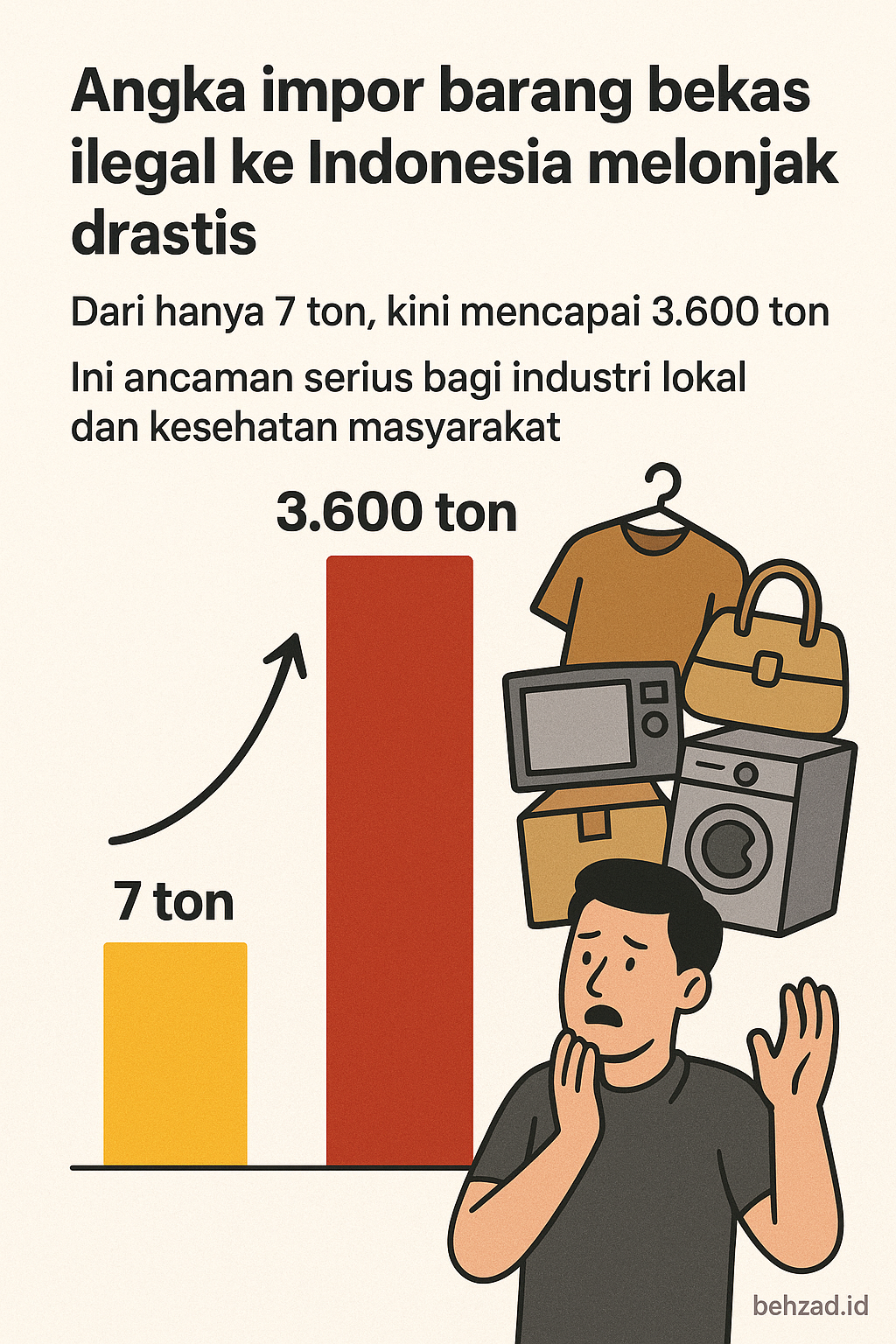JAKARTA – Sebuah data yang mencengangkan mengemuka, mengungkapkan ledakan impor barang bekas ilegal ke Indonesia. Jumlah barang bekas, terutama pakaian, yang berhasil masuk ke negeri ini melonjak drastis dari hanya 7 ton menjadi 3.600 ton dalam periode pengawasan tertentu.