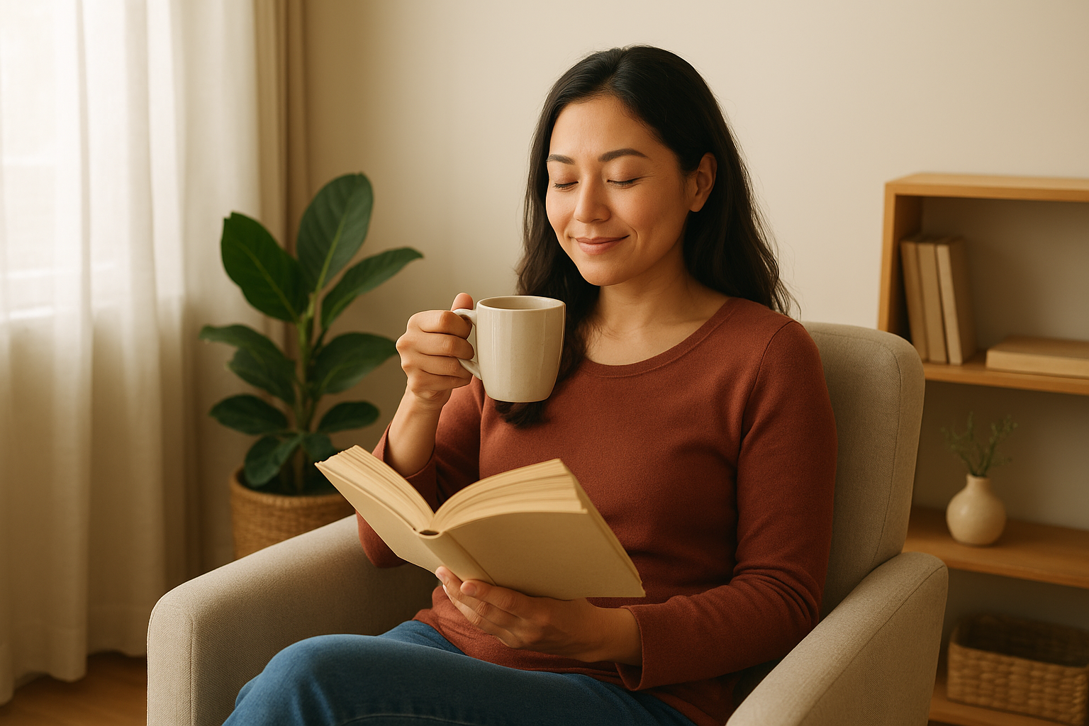 5. Ritual Minum Teh atau Kopi Tanpa Gangguan Ini adalah ritual paling sederhana namun paling efektif. Sajikan secangkir teh, kopi, atau minuman hangat favorit Anda. Minumlah dengan perlahan sambil menikmati setiap tegukan. Jangan lakukan sambil menonton TV atau menggendong anak. Fokuskan seluruh perhatian Anda pada rasa minuman dan ketenangan momen itu.